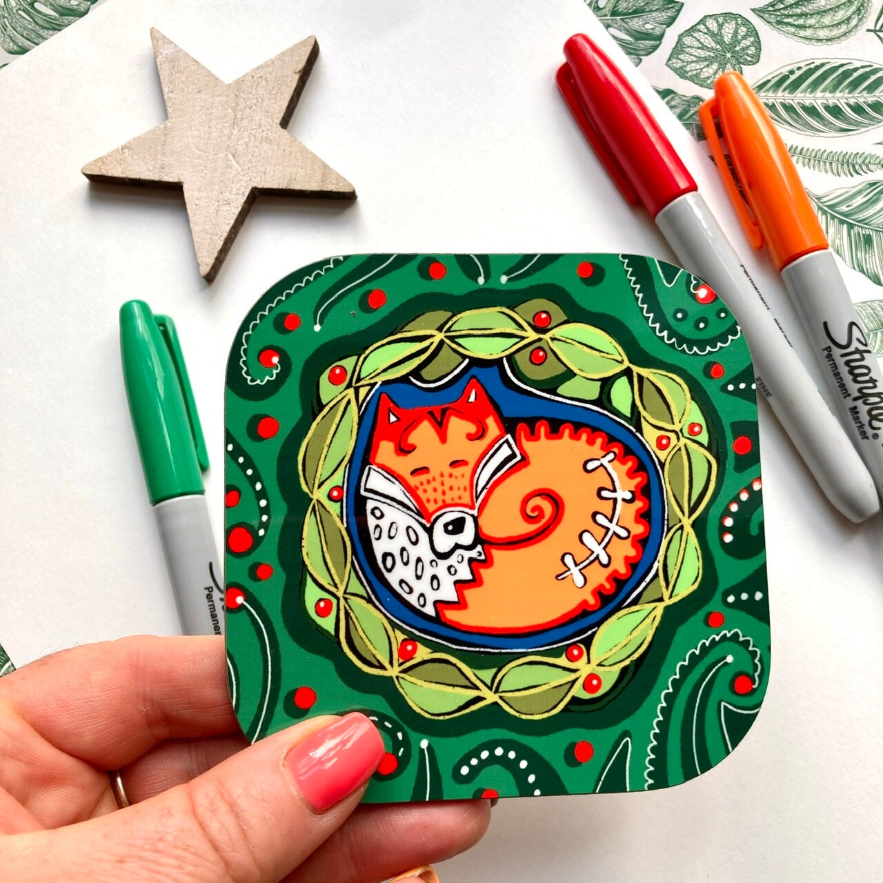 Curled Fox Coaster, Cute Fox Coaster Set, Woodland Coasters, Fox Lover Gift, Thank You Gift, Fox Fan.