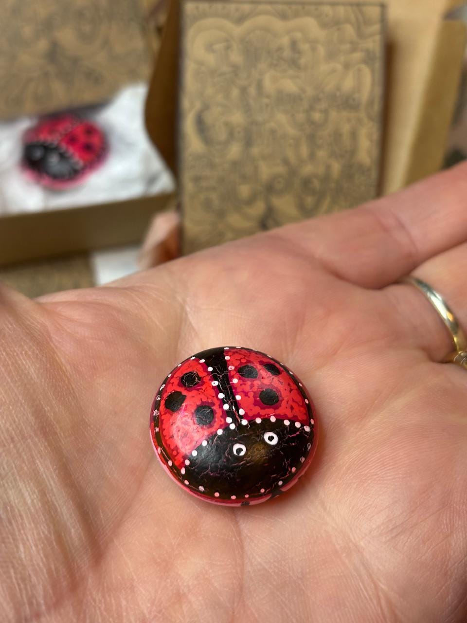 Ladybird/ladybug is made from a mini hand painted plaster pebble.